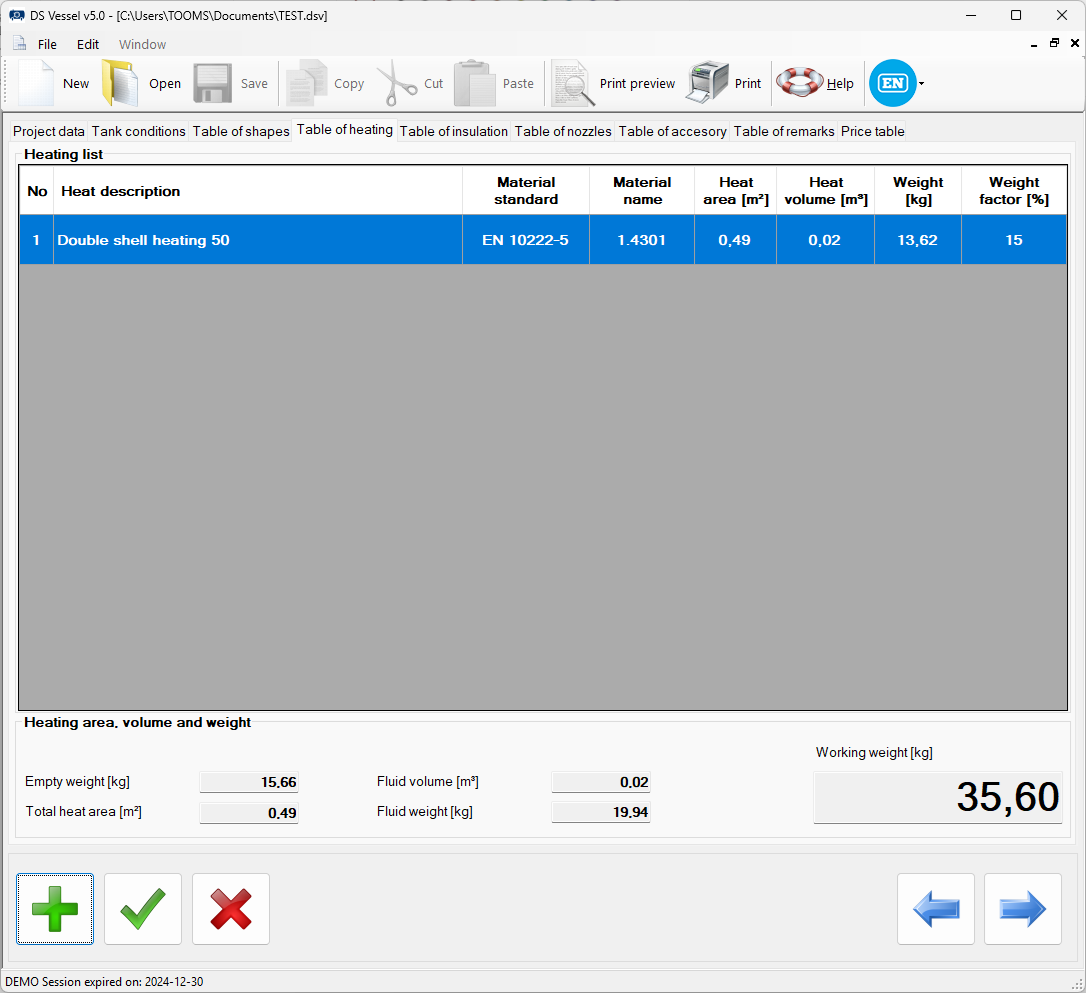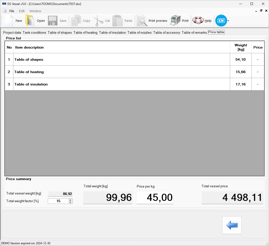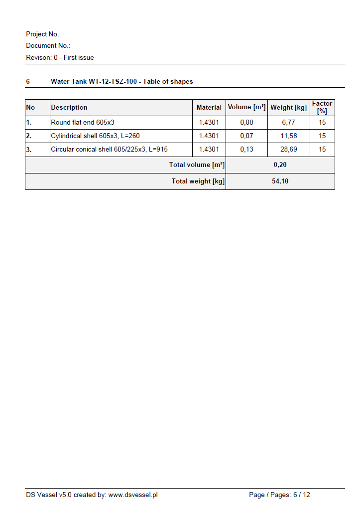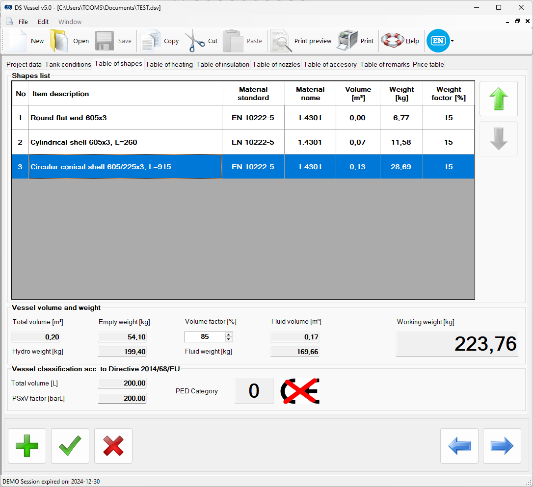 Program dokonuje oceny kategorii zbiornika zgodnie z Dyrektywą UE 2014/68/EU.